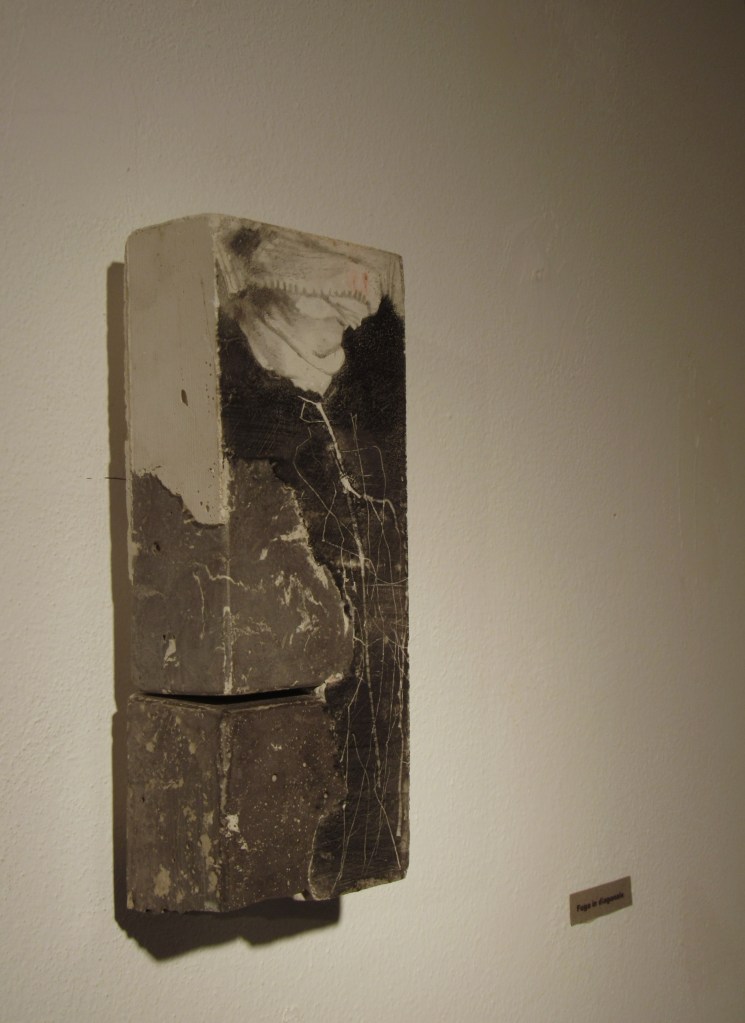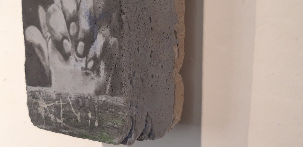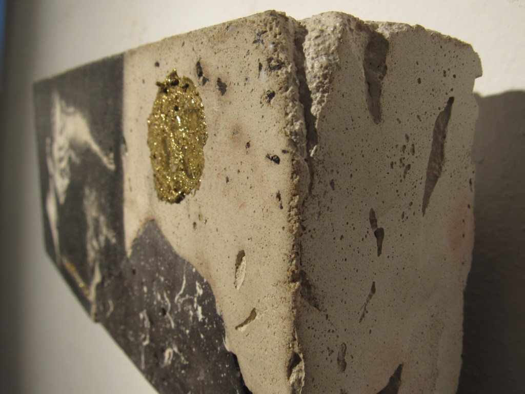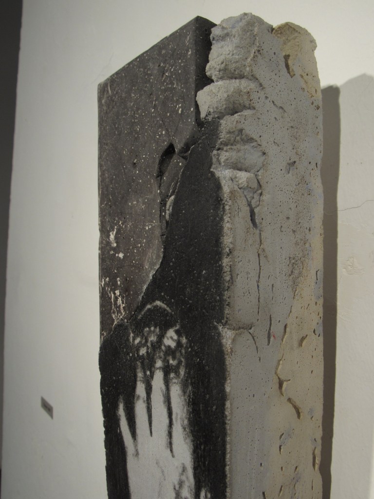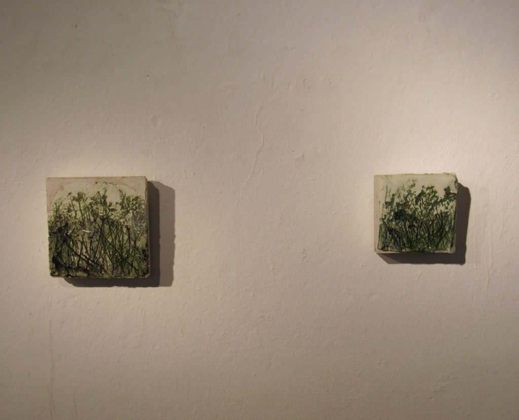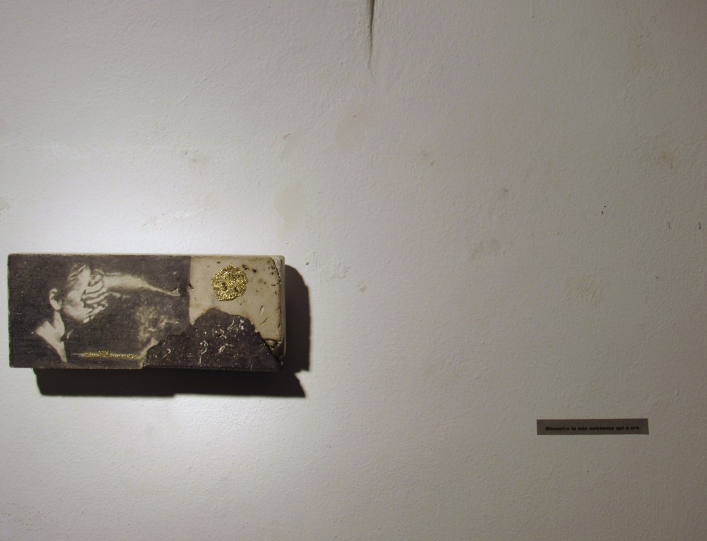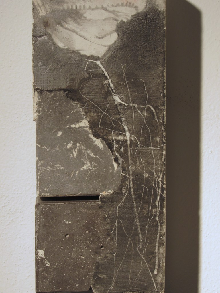 Totem, graphite and pigments on gesso and concrete Dimostra la mia esistenza quì e ora, grafite, oro in foglia e gesso su cementoLasciati all’ Andare, grafite, oro in foglia e gesso su cemento Solastalgia, tecnica mista su gesso e cemento Fuga in diagonale, grafite e gesso su cemento