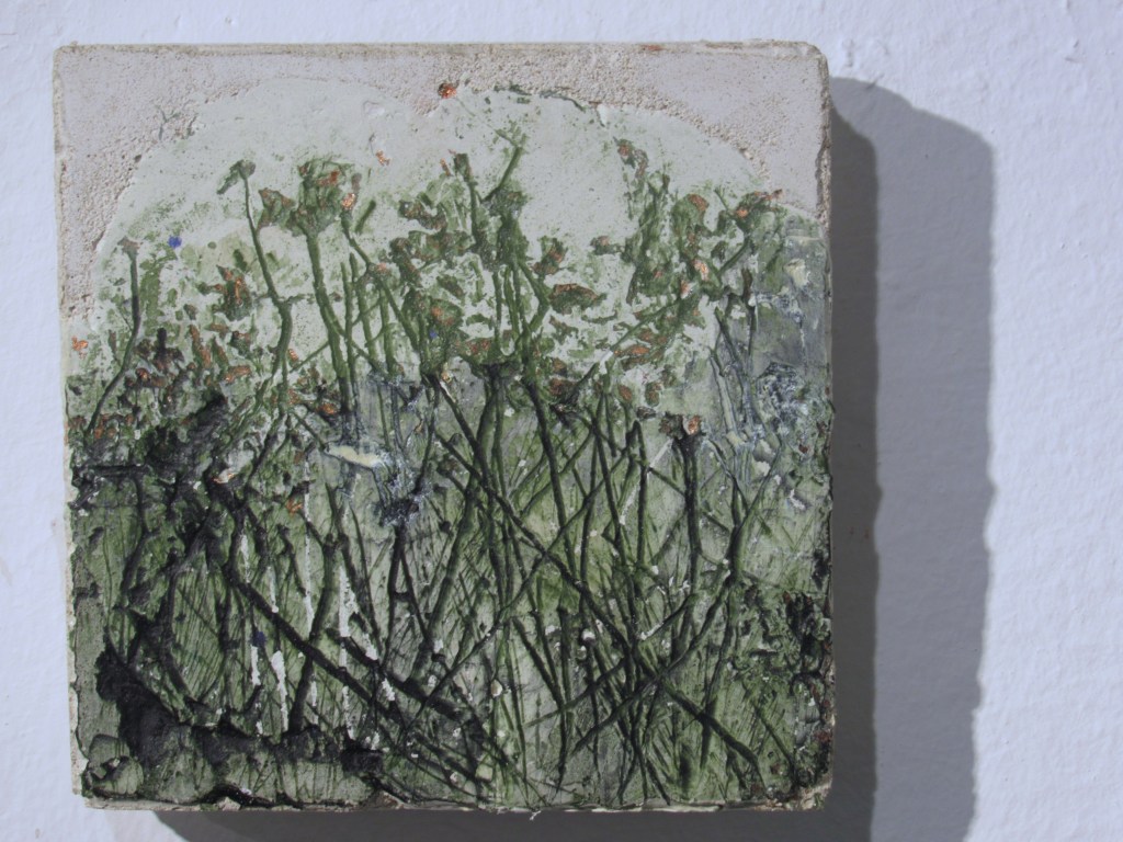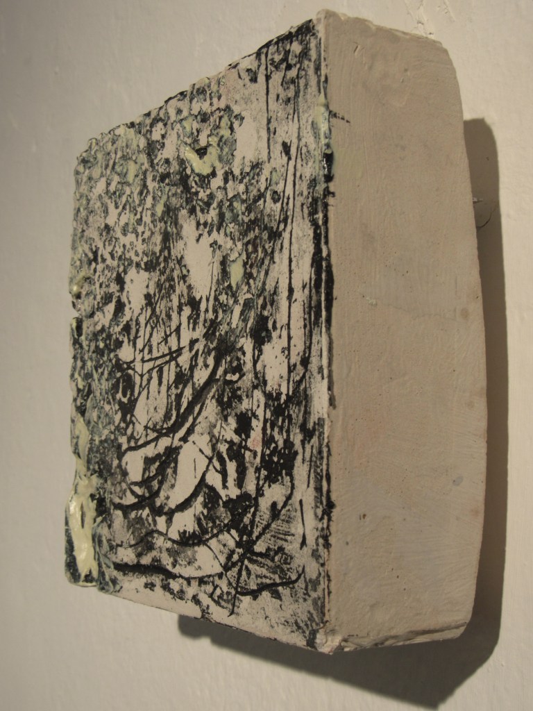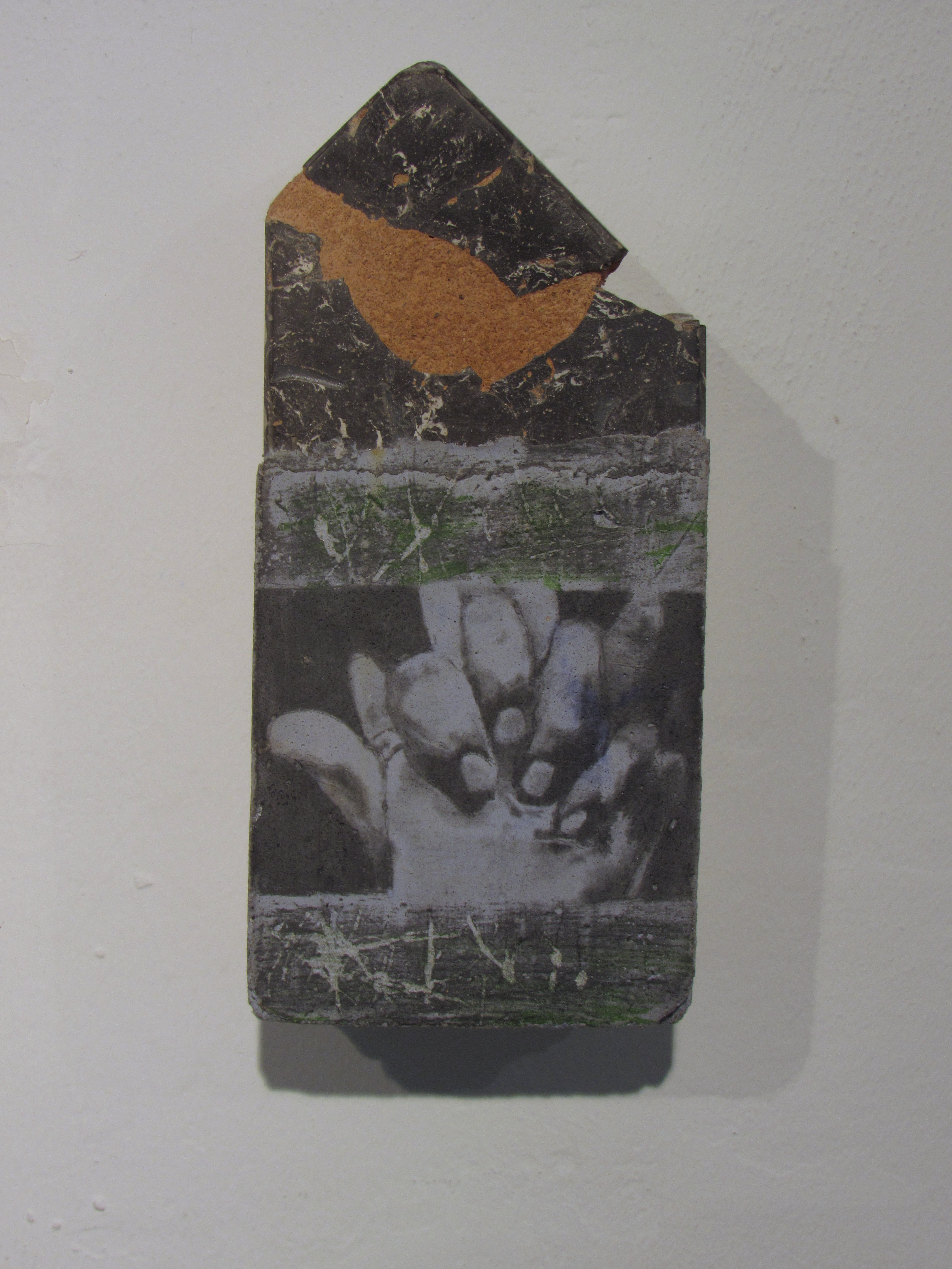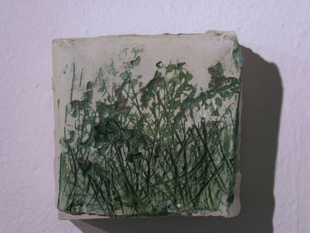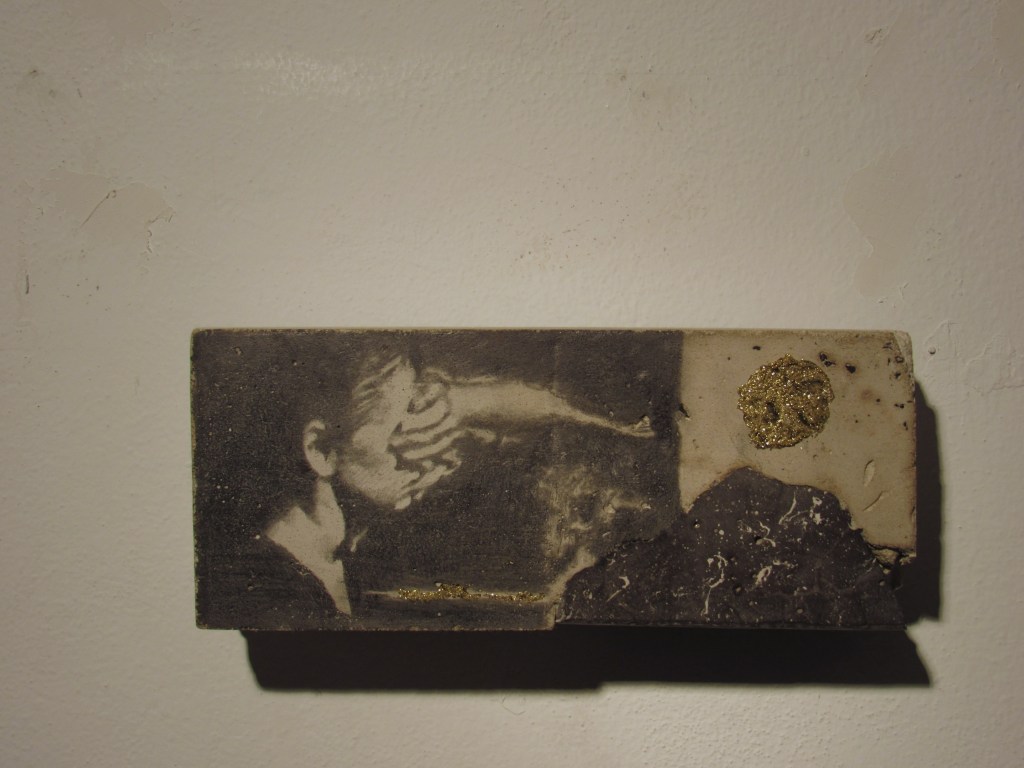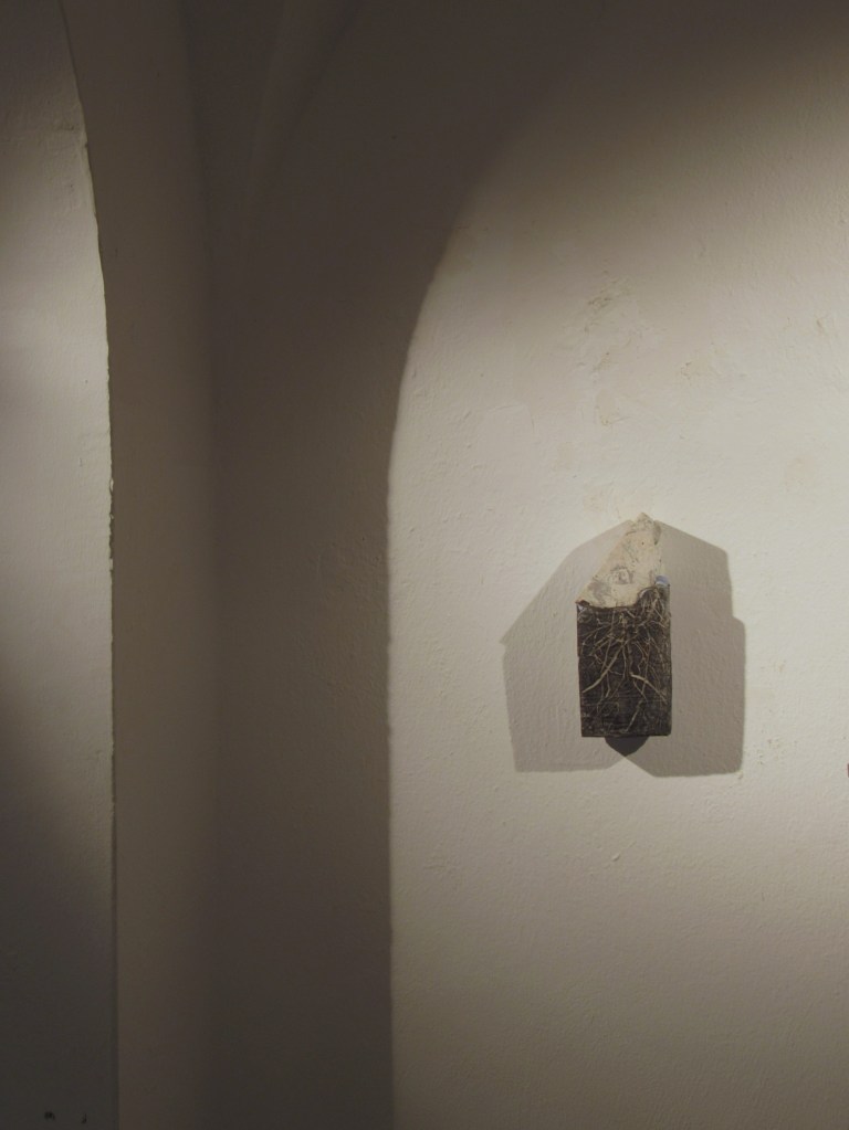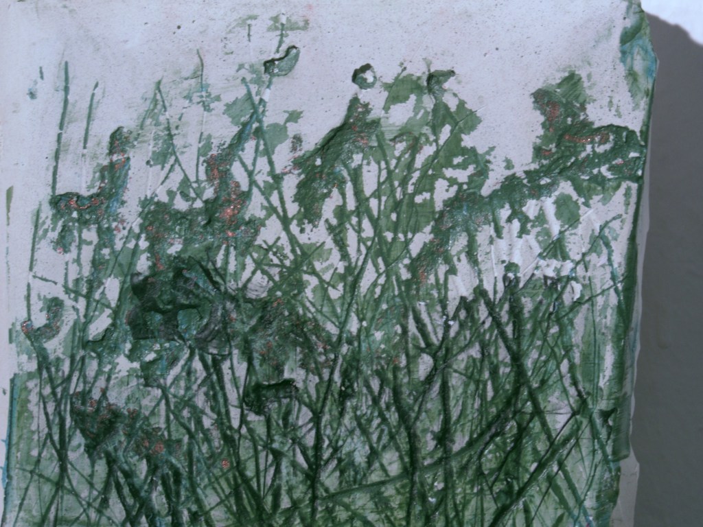 Totem, graphite and pigments on gesso and concrete Dimostra la mia esistenza quì e ora, grafite, oro in foglia e gesso su cementoLasciati all’ Andare, grafite, oro in foglia e gesso su cemento Solastalgia, tecnica mista su gesso e cemento Fuga in diagonale, grafite e gesso su cemento